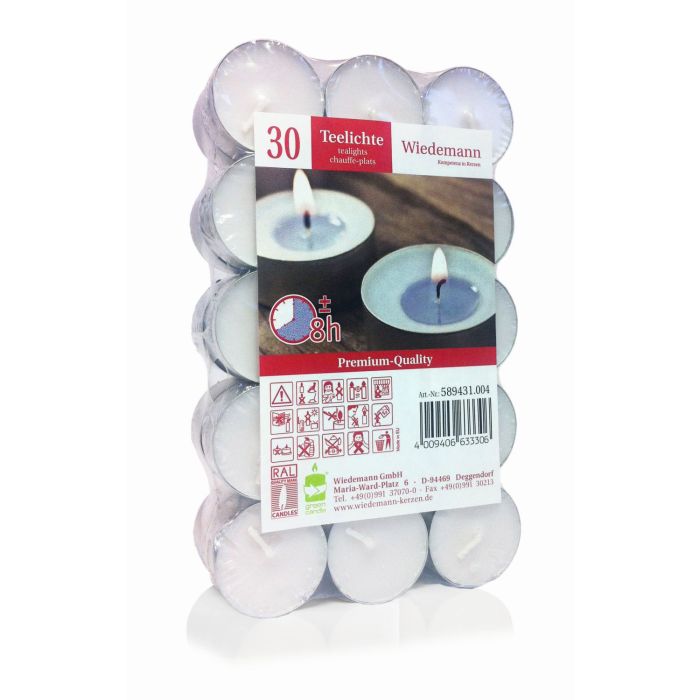 Set of 30 tea lights KENNY, white, 0.9"/2,2cm, Ø1.5"/3,9cm, 8h