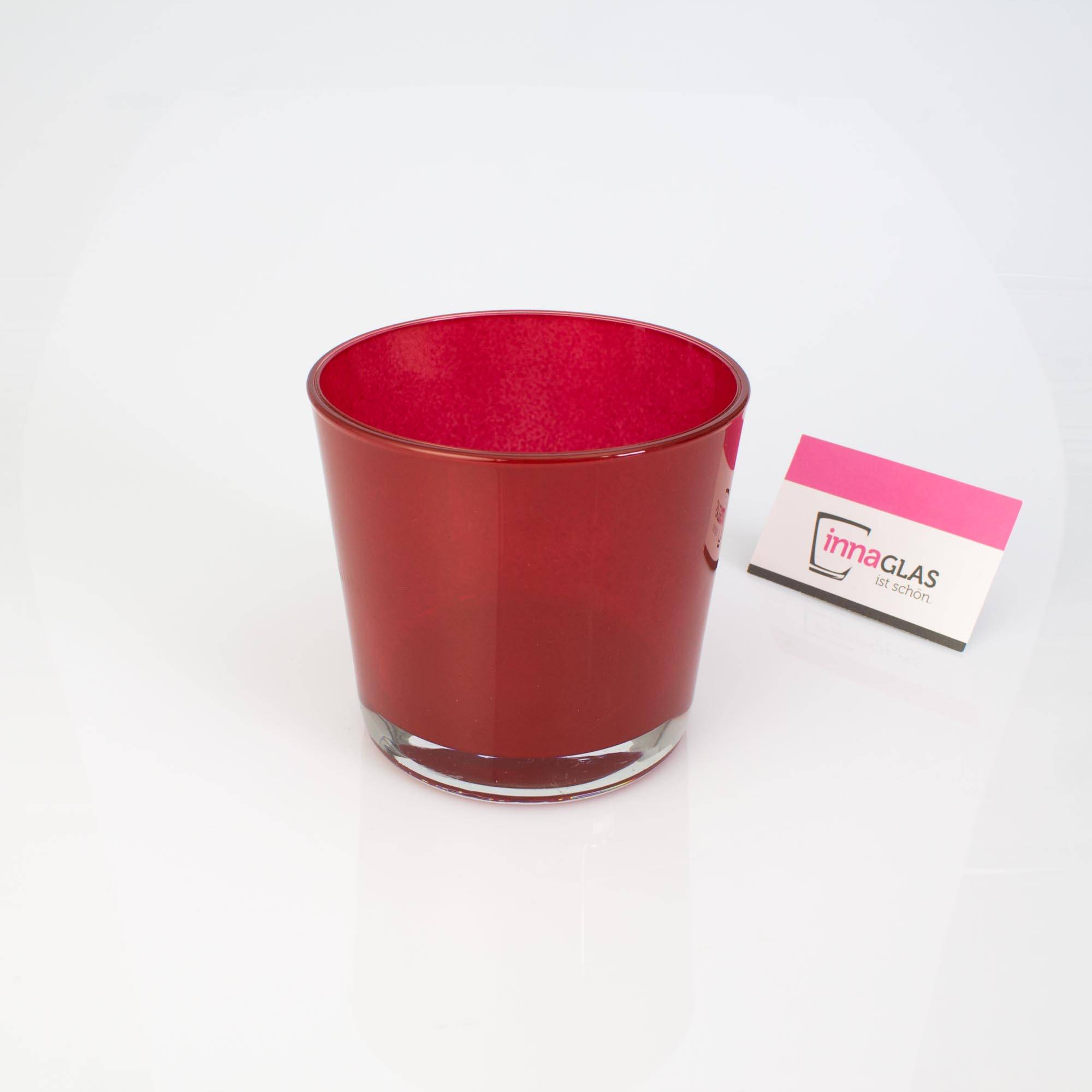 Small glass vase ALENA by INNA Glas in red. The glass is with its size (height: 4.1" / 10,5 cm, ø 4.5" / 11,5 cm) ideal for large tea lights or small plants whether real or artificial.