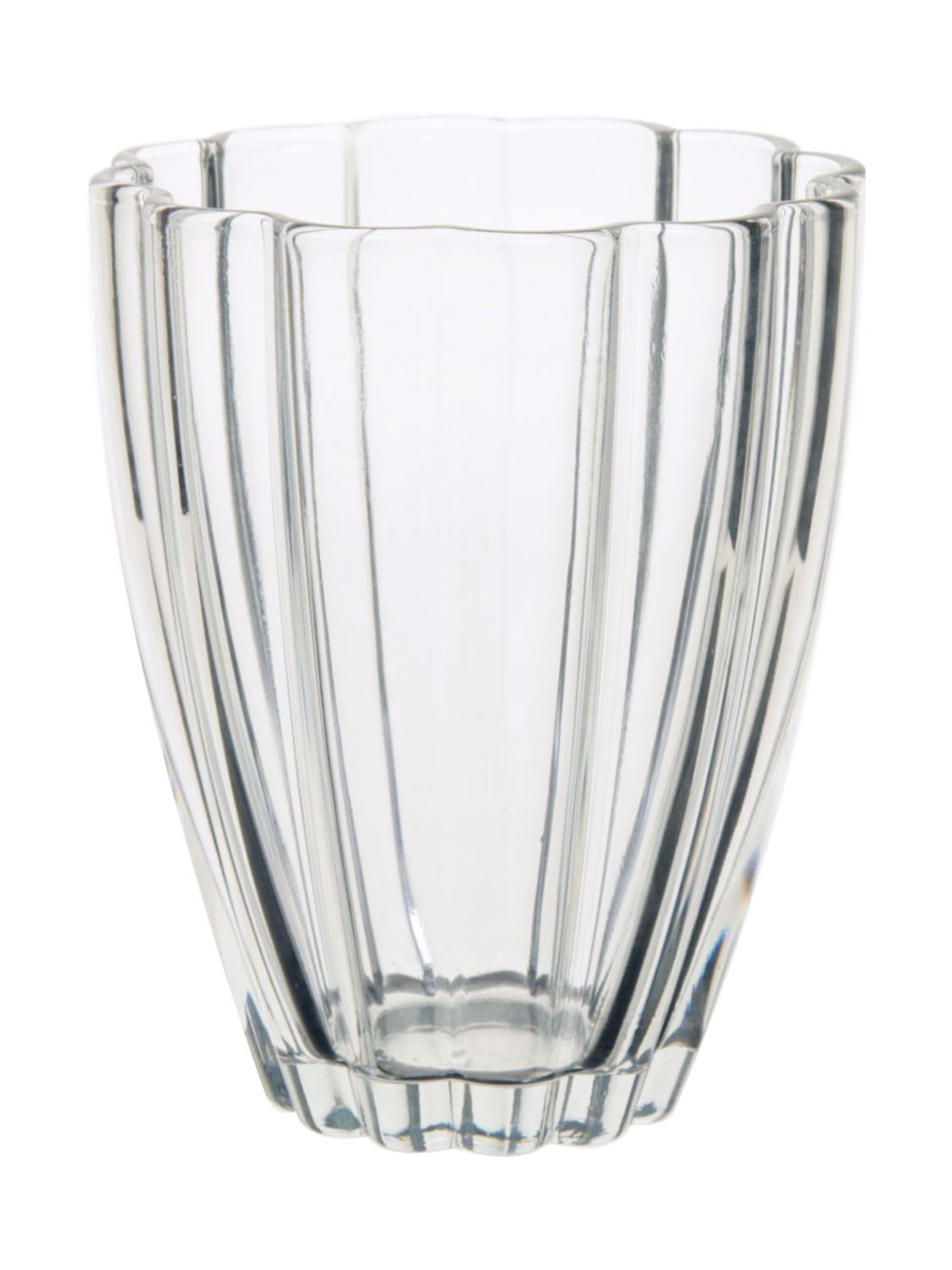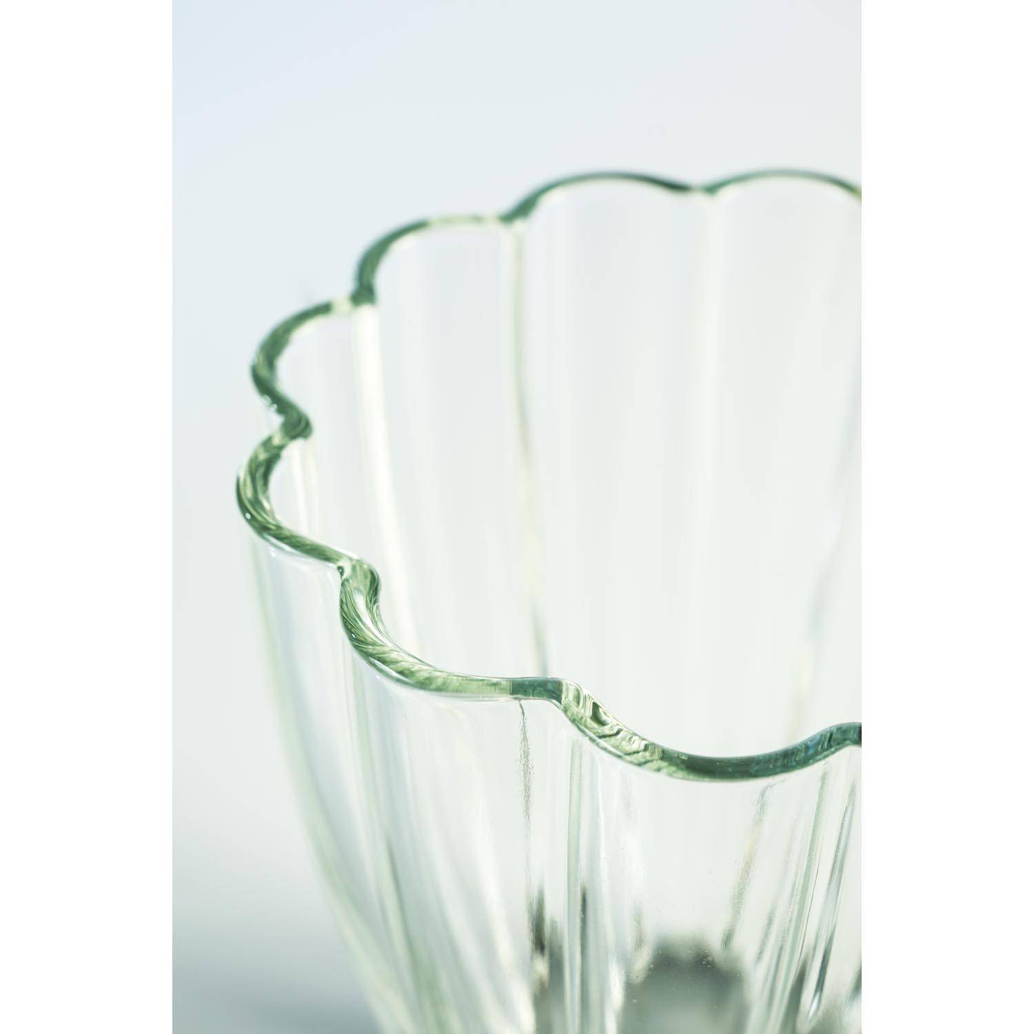 Small vase BEA of 0.2" / 5 mm thick glass in clear; distributed by INNA Glas. The beautiful vase has wavy side walls and a height of 6.69" / 17 cm. It has an external diameter at the top of 5.51'' / 14 cm and on the bottom 3.15" / 8 cm.
