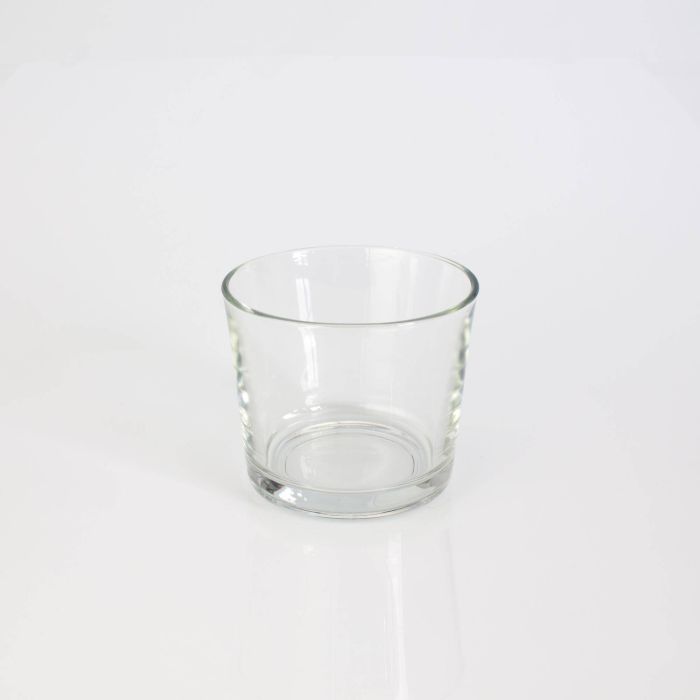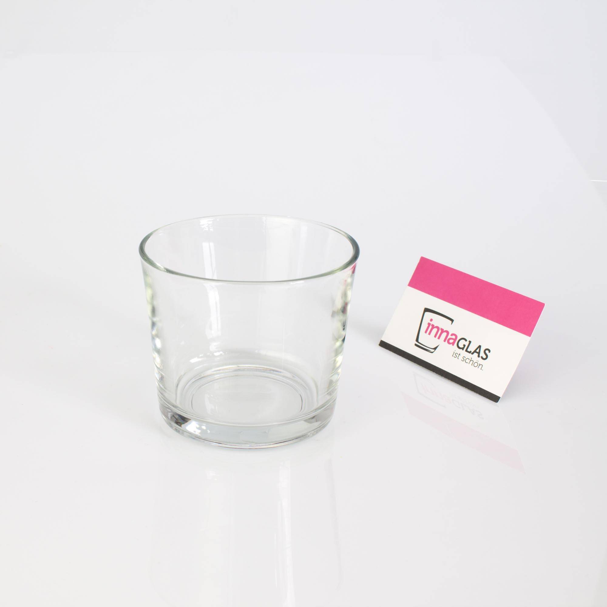 Small decorative glass ALENA by INNA Glas in the colour clear. The table or flower vase with its height of approx. 3.3" / 8,5 cm and a diameter of approx. 3.9" / 10 cm can also be used as a lantern glass for large tea lights.