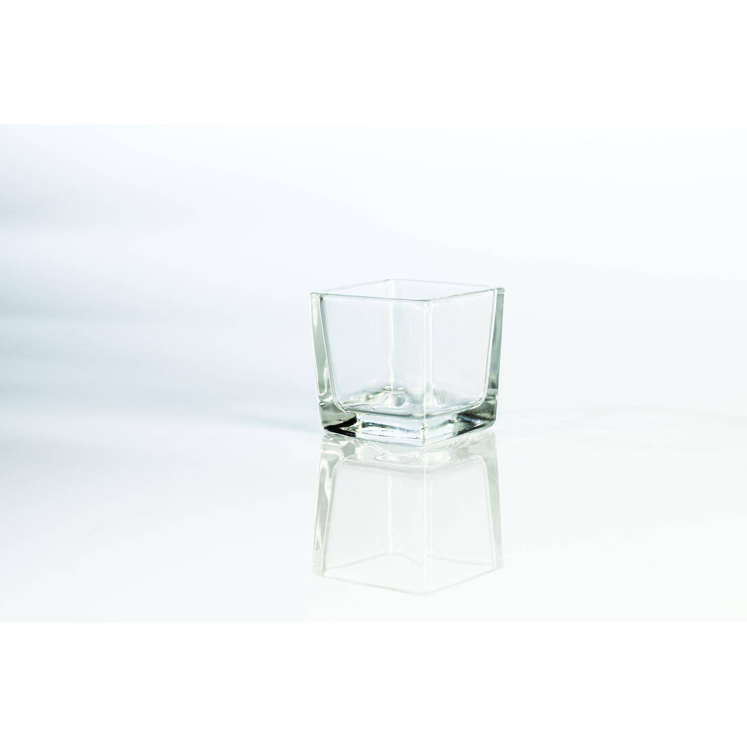 Small square decorative glass KIM AIR in clear; distributed by INNA Glas. Thanks to the dimensions 2.36" x 2.36" x 2.36" / 6 x 6 x 6 cm, this beautiful glass is the perfect candle holder for your tea light.