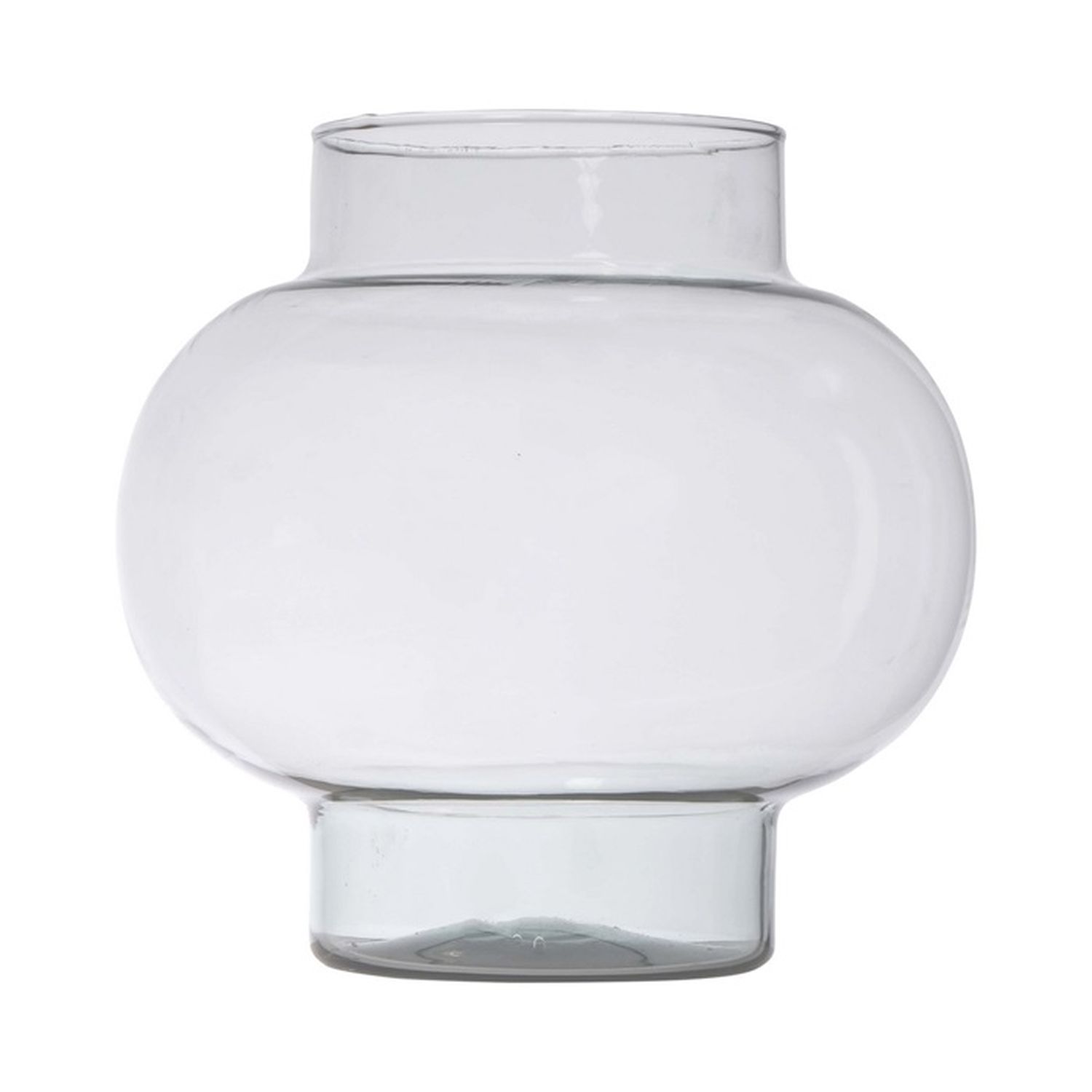 The decorative vase RAINIERO in clear is made of glass and has a height of approx. 9"/23 cm and a diameter of approx. 9"/23 cm. A decorative element for your home, house, restaurant, hotel and much more.