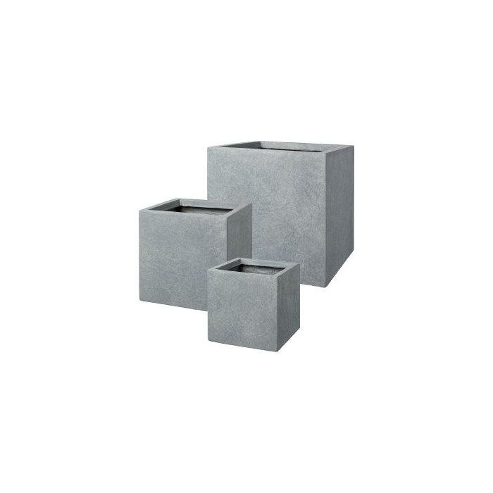 Square flower pot KIRIMA, 3 pieces, fibreglass, grey, 16"x16"x16"/40x40x40cm, 12"x12"x12"/30x30x30cm, 9"x9"x9"/24x24x24cm