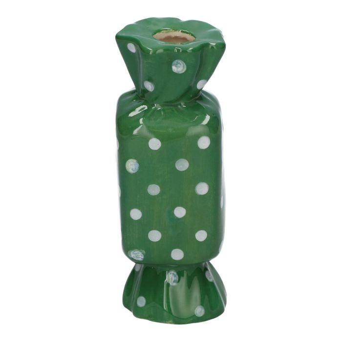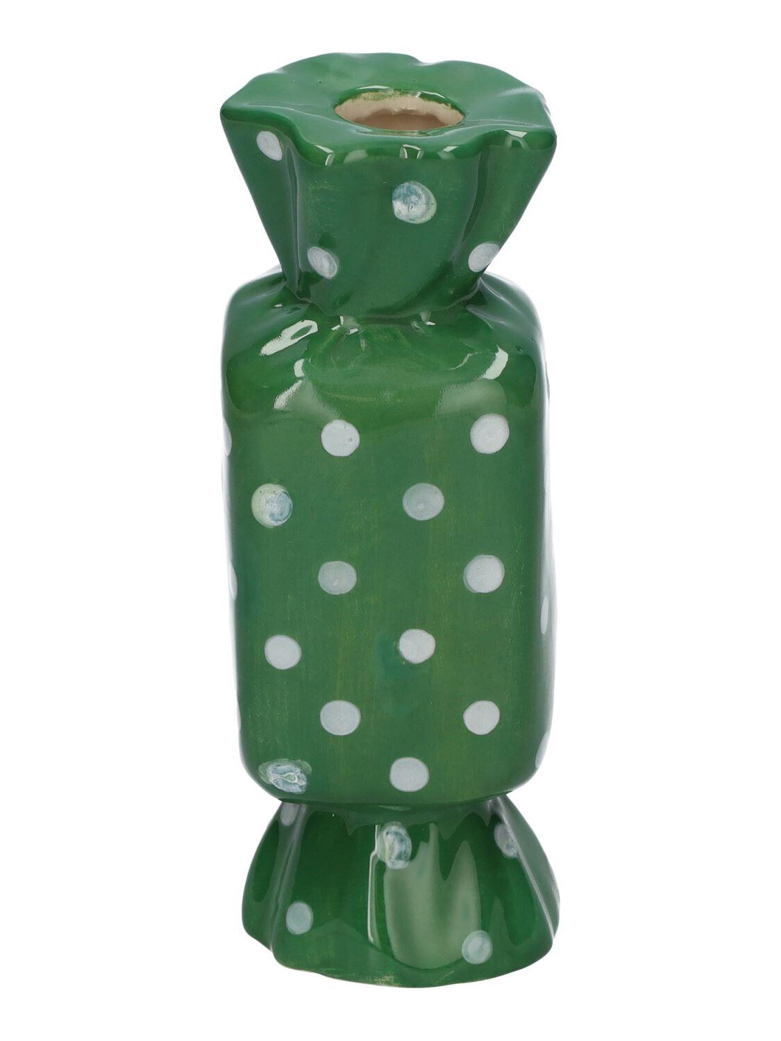 Square single flower vase in the shape of a sweet AMIEL made of ceramic, with dots, green-white, 1.8"x1.8"x4.5"/4,5x4,5x11,5cm