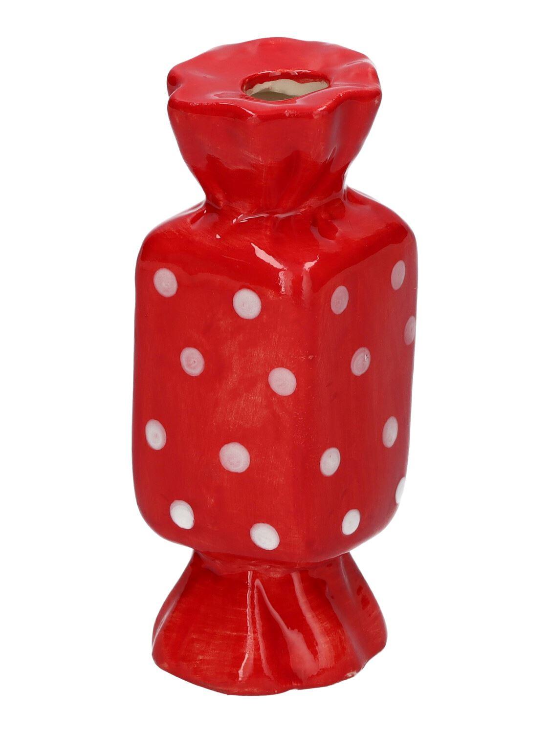 Square single flower vase in the shape of a sweet AMIEL made of ceramic, with polka dots, red-white, 2.6"x2.6"x6"/6,5x6,5x15cm
