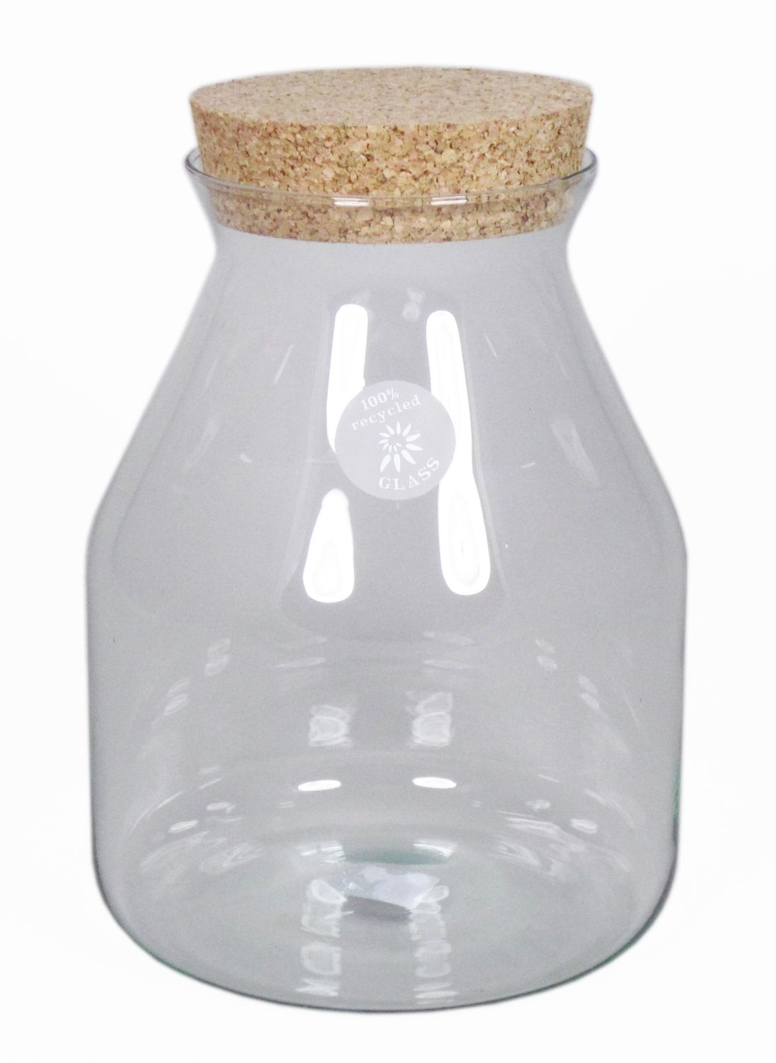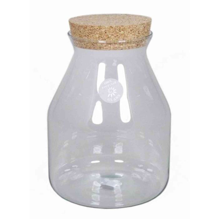 Storage glass VLADIMIR, with cork lid, cone/round, clear, 10"/26cm, Ø7"/18cm