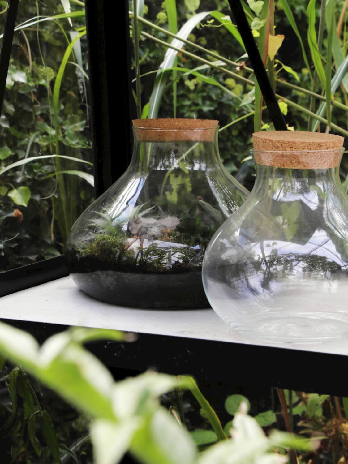 - Item: Terrarium, Shape: Round, Main material: Glass, Second material: Cork, Technique: Mouth blown