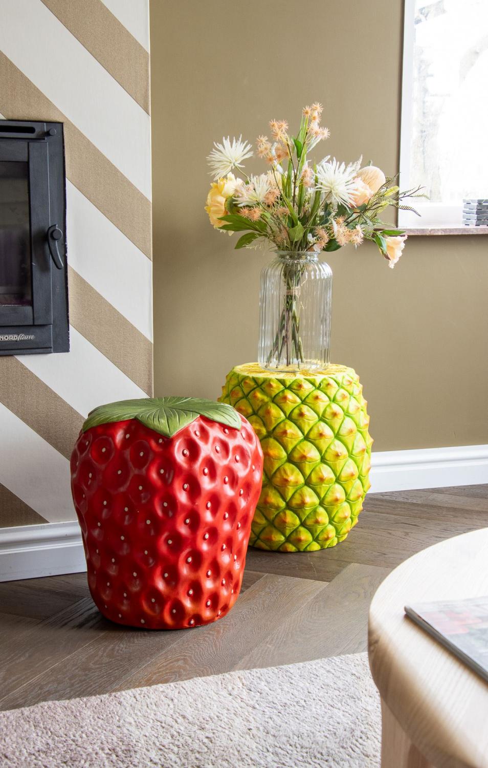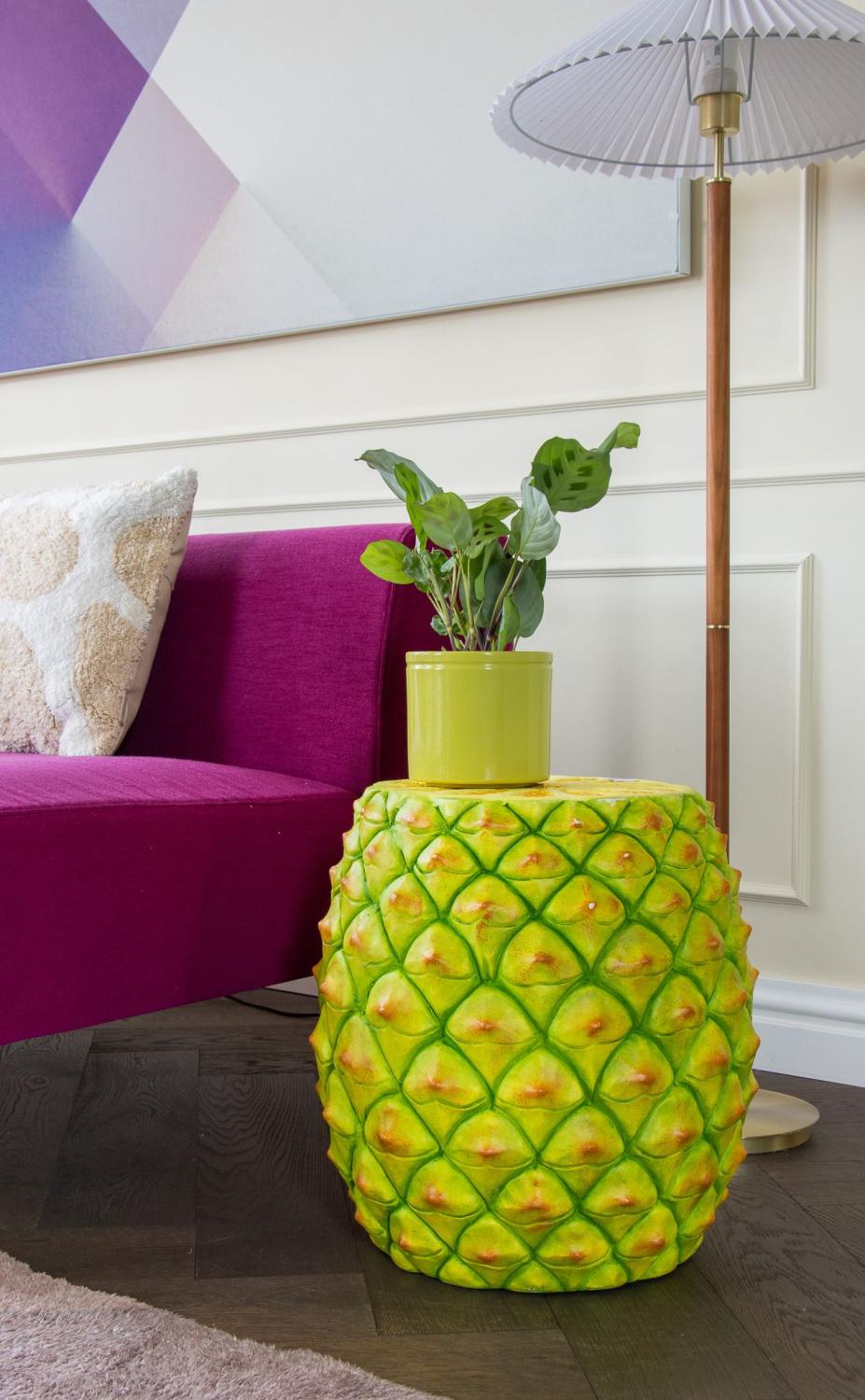 Storage table MOLANI in pineapple shape, yellow-green-orange-white, 17"/43cm, Ø16"/41cm