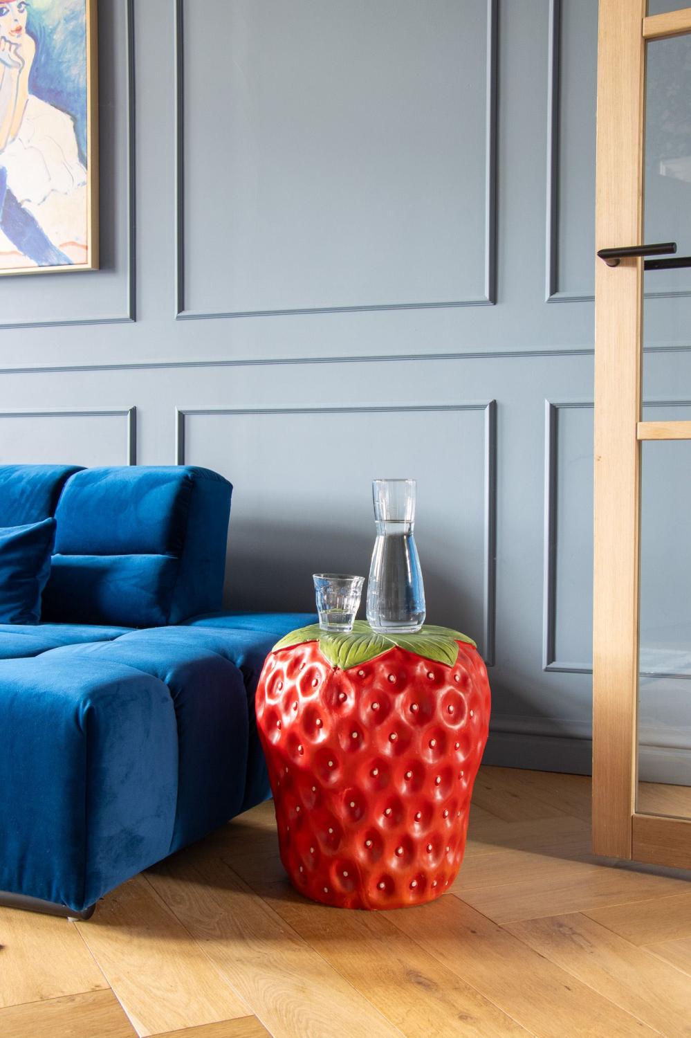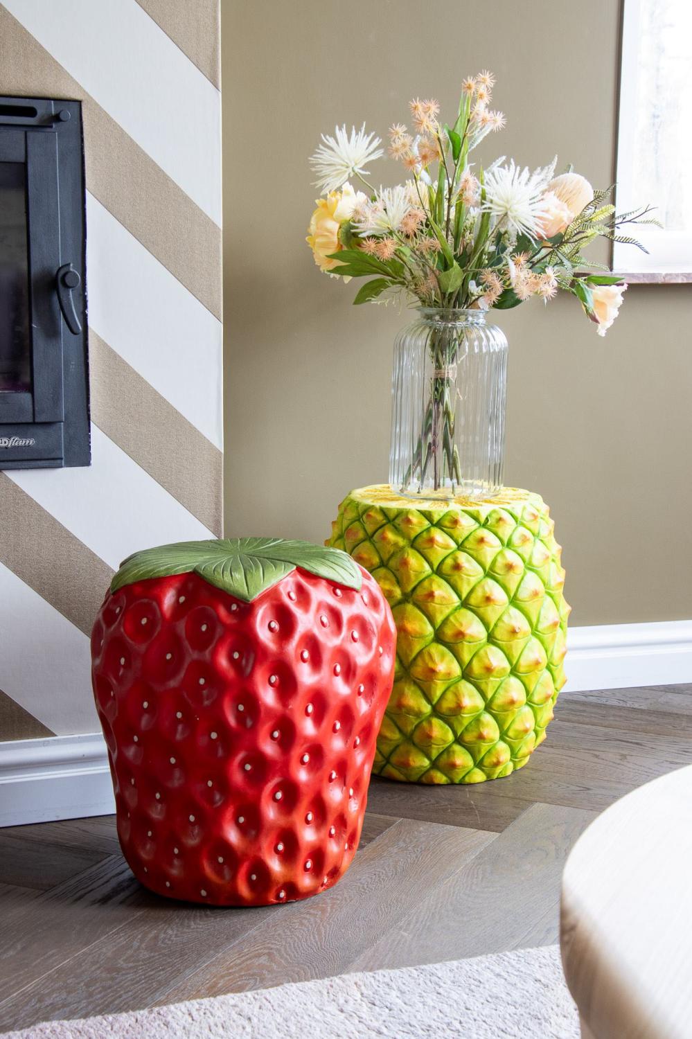 Storage table MOLANI in strawberry shape, red-green-white, 17"/43cm, Ø16"/39,5cm