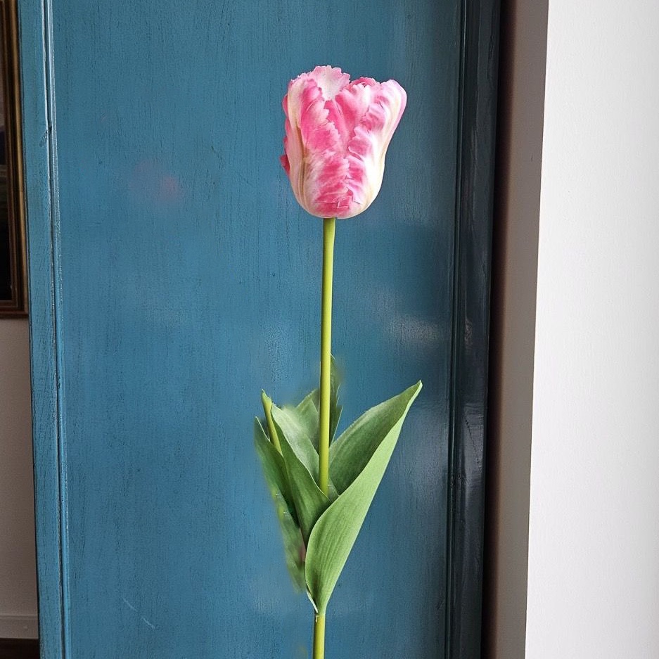 Synthetic flower Parrot tulip PETSCHORA, dark pink-cream, 26"/65cm