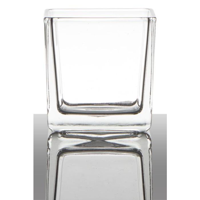 Tealight holder KIM EARTH, cube/square, clear, 3.1"x3.1"x3.1"/8x8x8cm