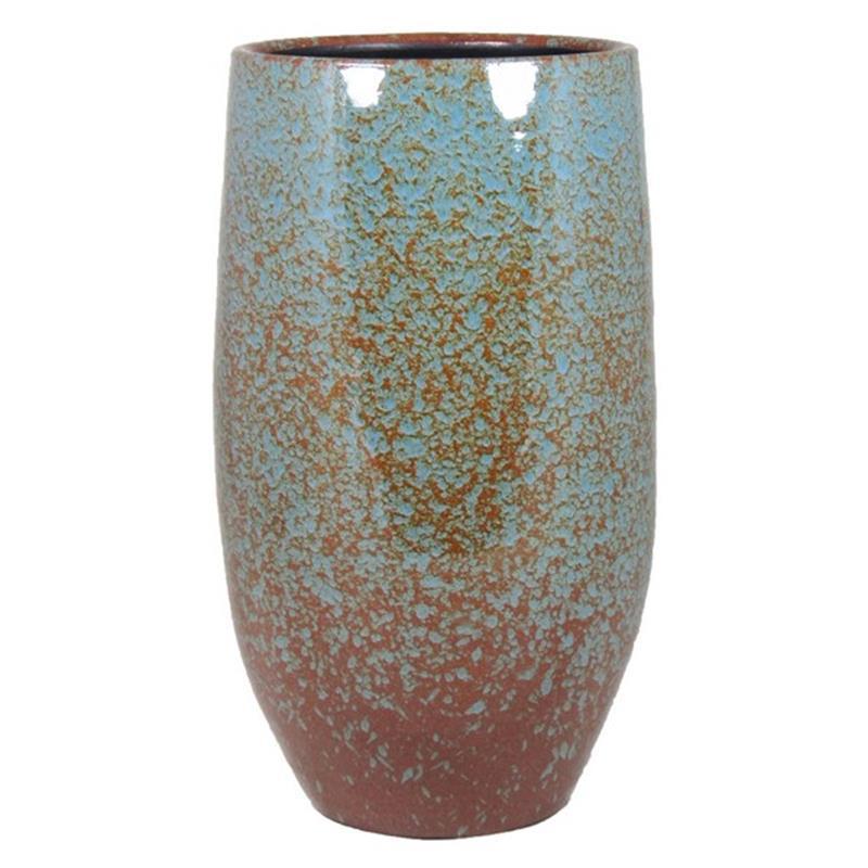 Terracotta flower vase MAPENZI, pattern, blue-brown, 14"/35cm, Ø7"/18cm