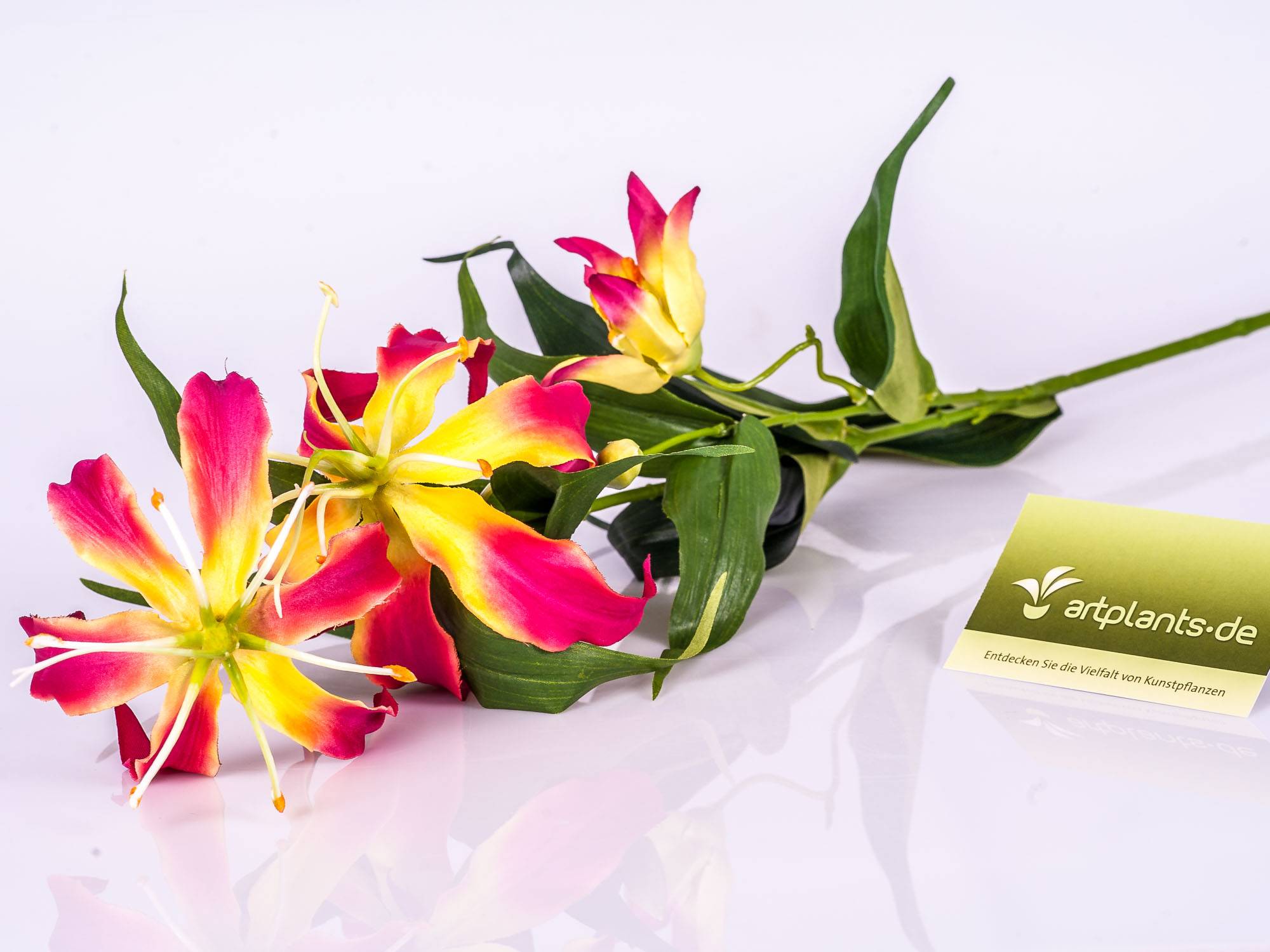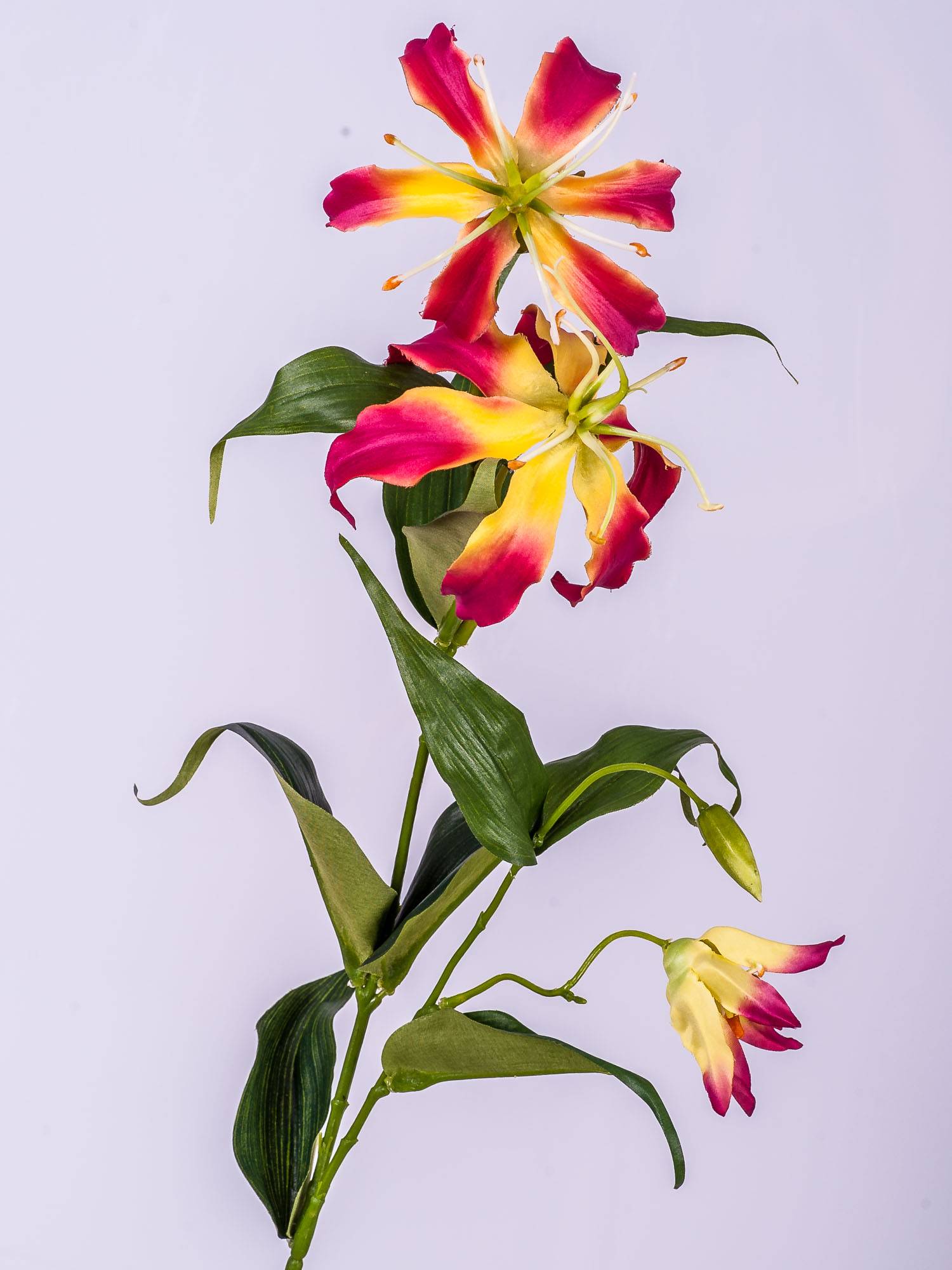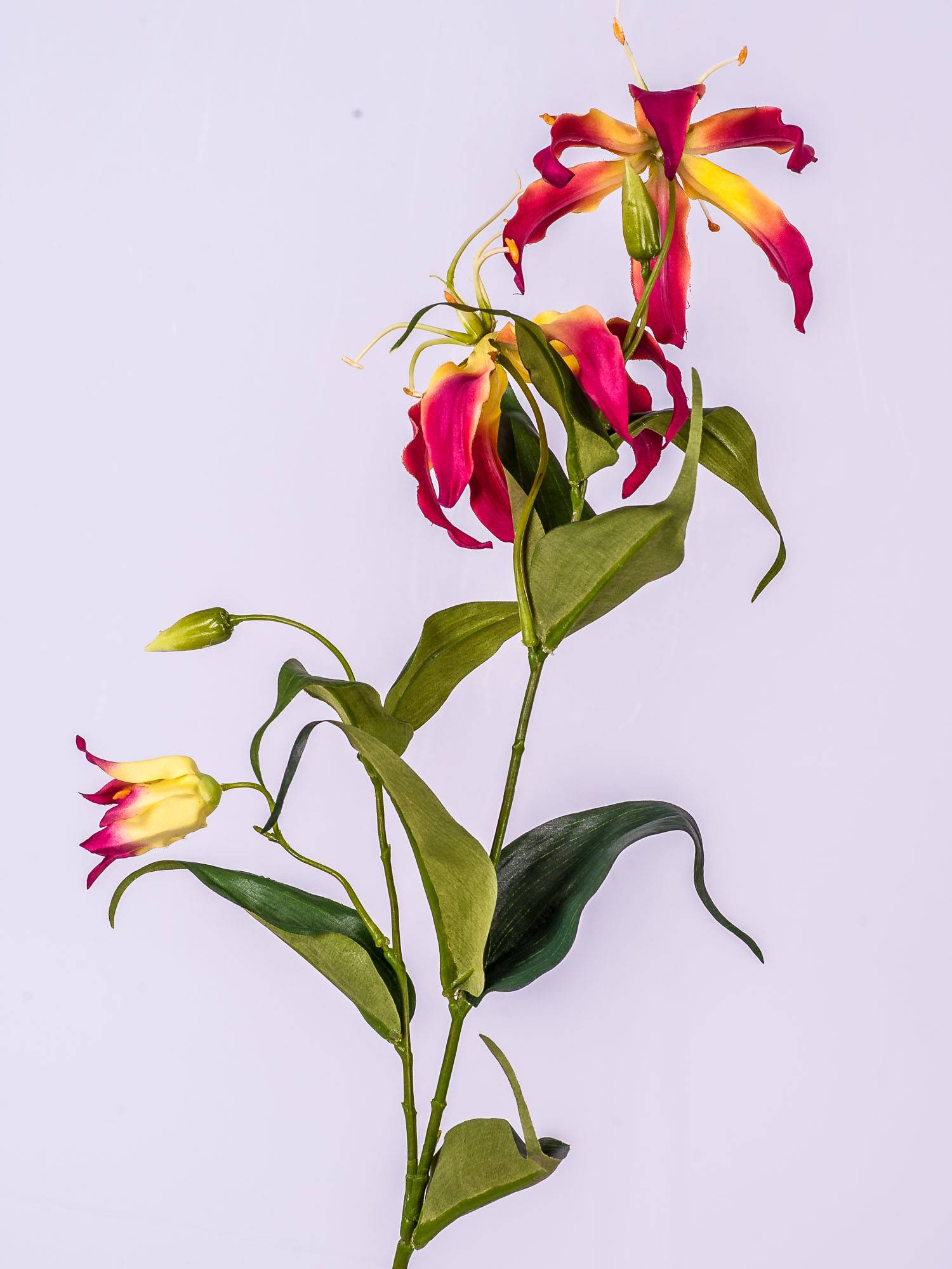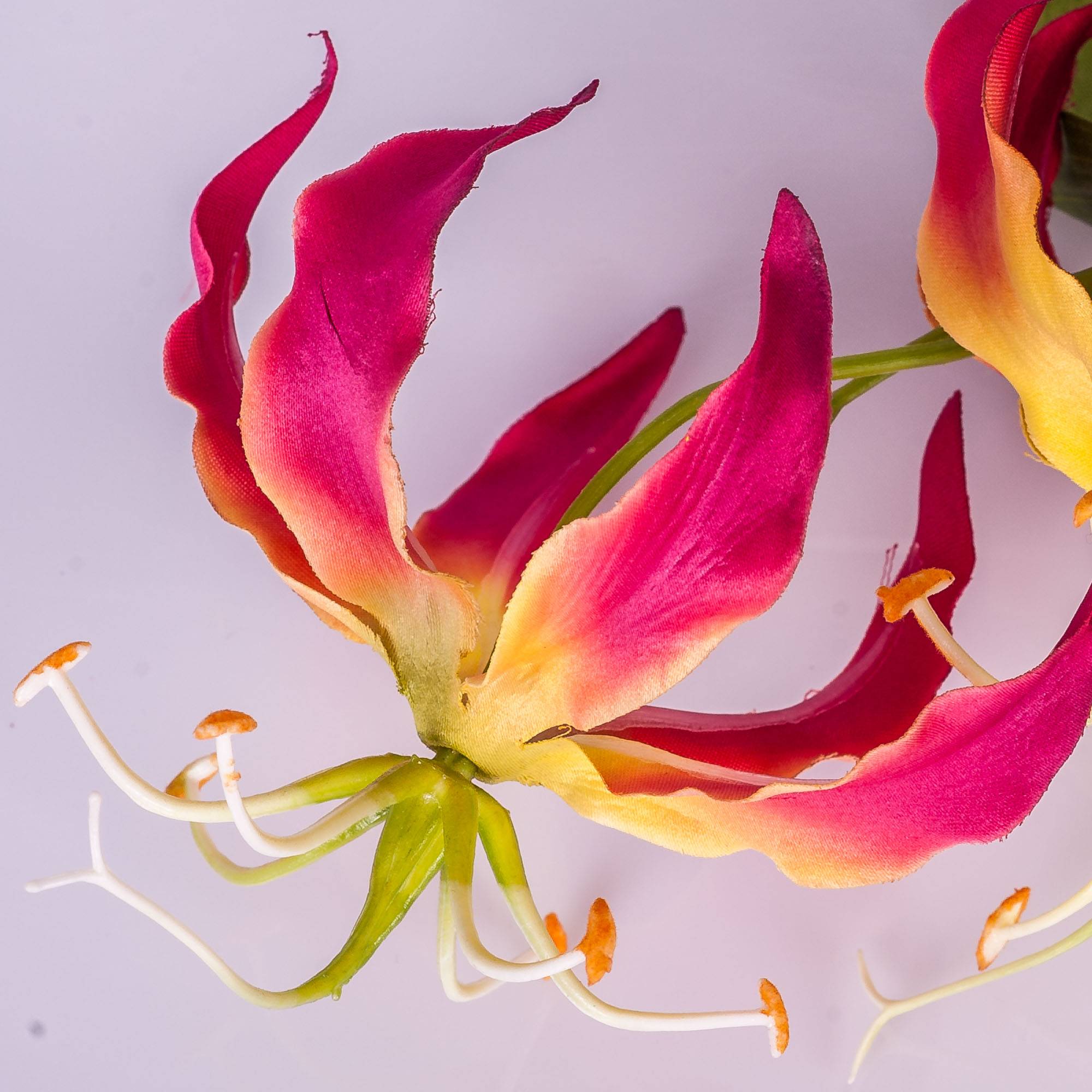 Textile flower Gloriosa FUJITA, pink-yellow, 31"/80cm, Ø 5.9"/15cm