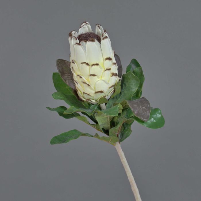 Textile flower Protea NELLI, white-yellow, 30"/75cm, Ø 3.1"/8cm