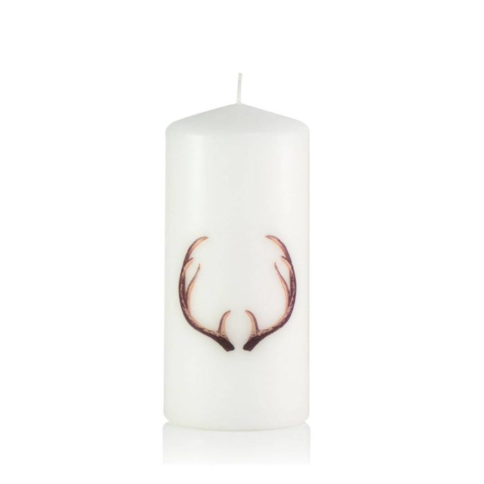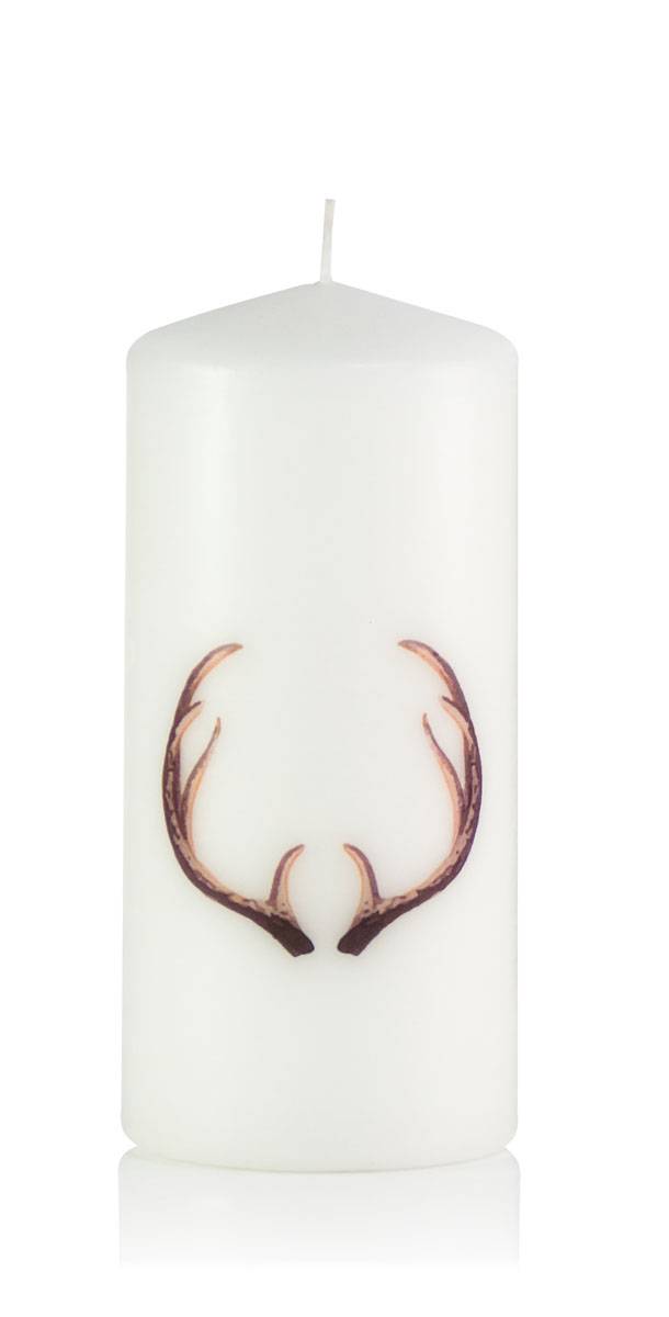 Trend candle / Motif candle WALDI, deer antler-decal picture, white, 6"/15cm, Ø2.8"/7cm, 52h - Made in Germany