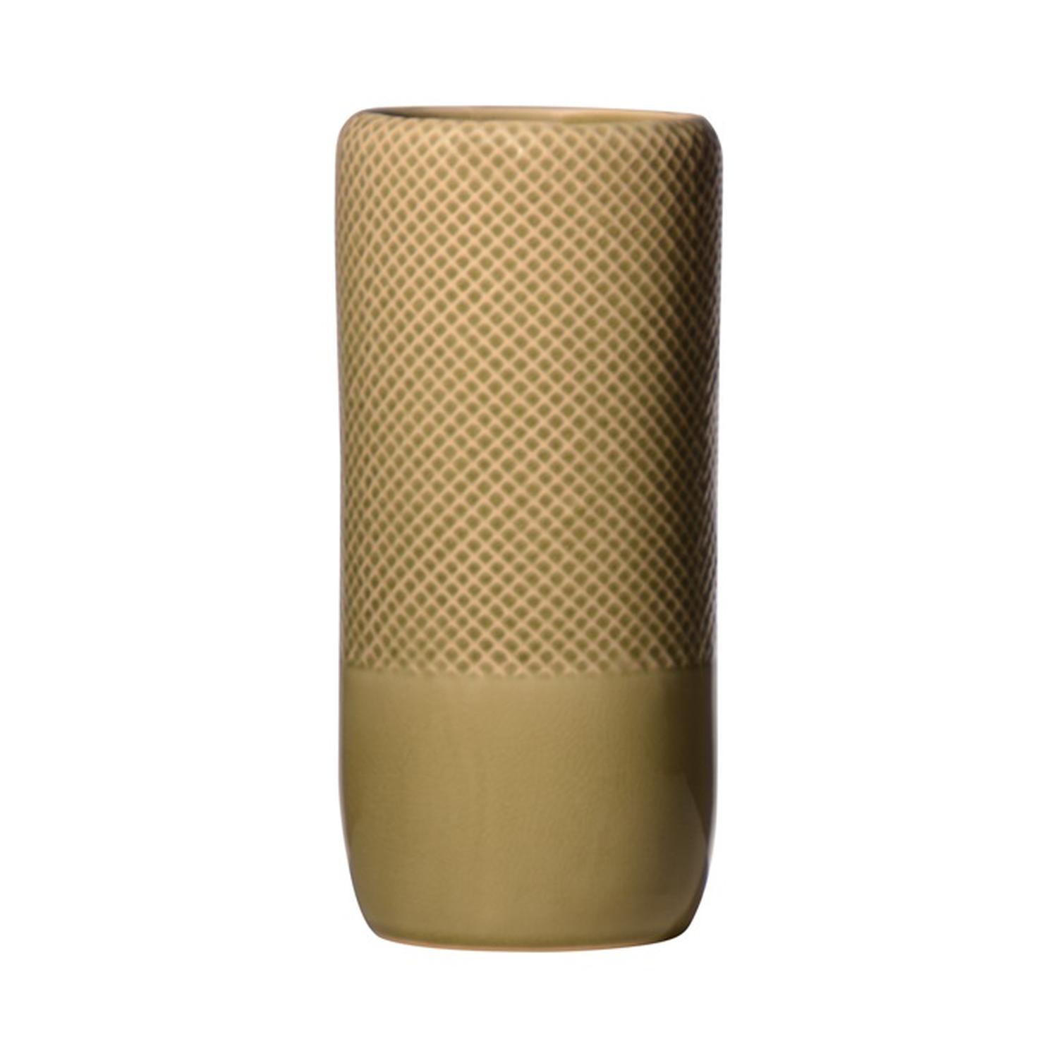 Vase DANYLO made of ceramics, diamond pattern, green-brown, 11"/28cm, Ø5"/13cm