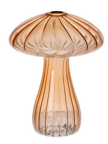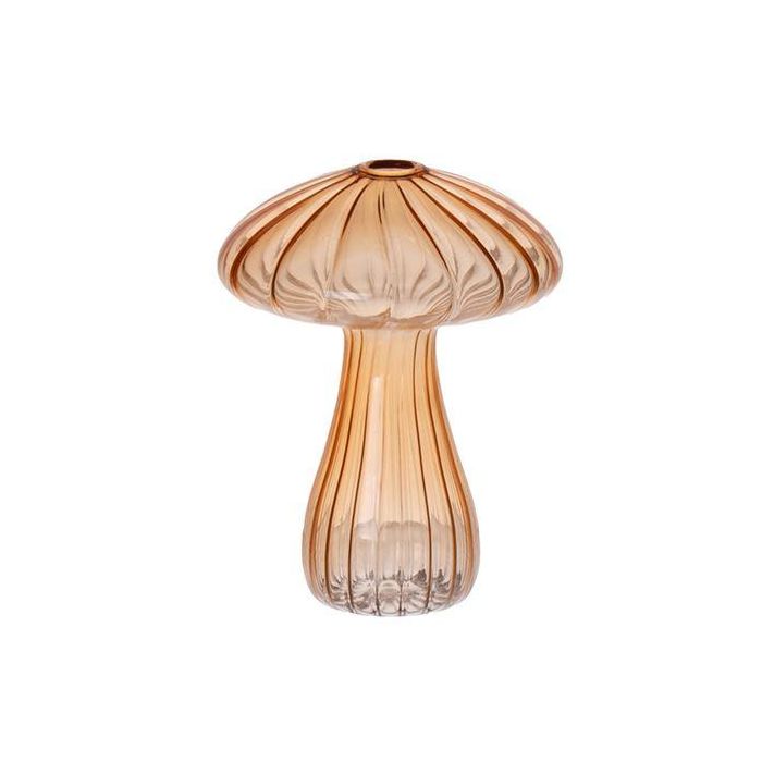 Vase made of glass PULCHERIA, mushroom shape, grooves, amber-clear, 13cm Ø10cm