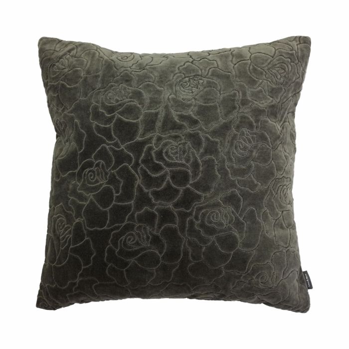 Velvet cushion ALAIA, rose pattern, brown, 18"x18"/45x45cm