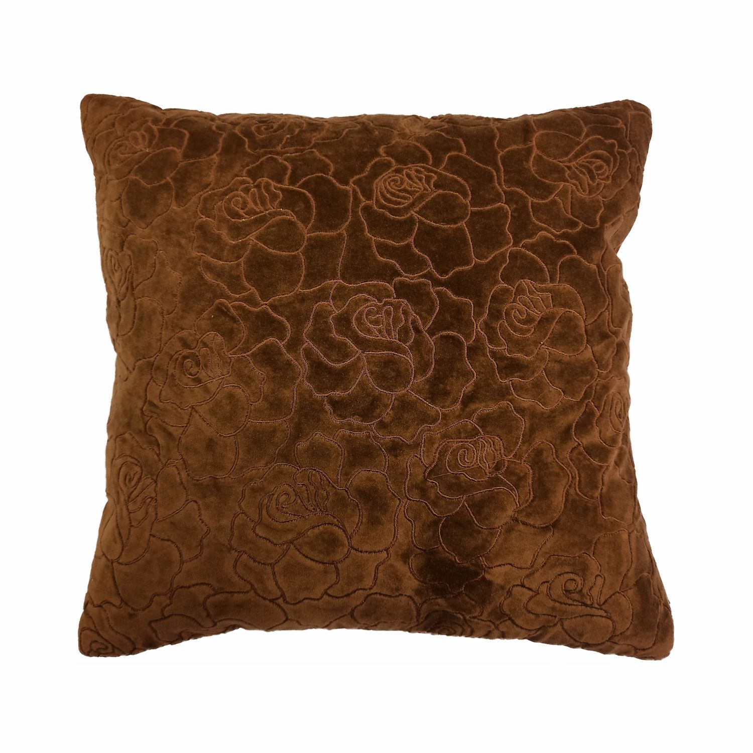 Velvet cushion ALAIA, rose pattern, chocolate brown, 18"x18"/45x45cm