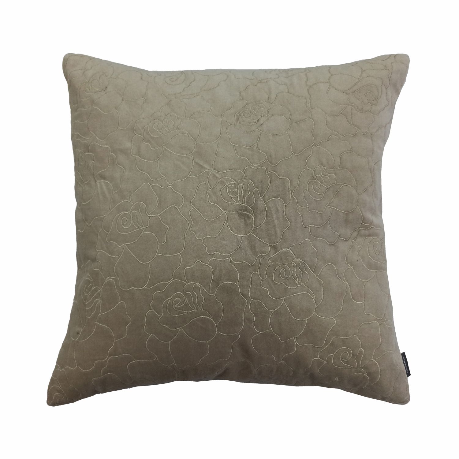 Velvet cushion ALAIA, rose pattern, ivory, 18"x18"/45x45cm