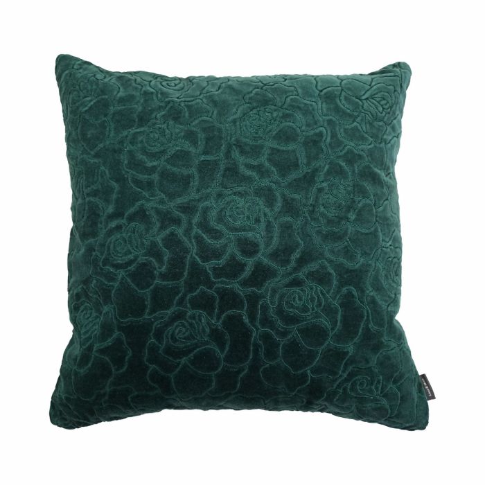 Velvet cushion ALAIA, rose pattern, pine green, 18"x18"/45x45cm