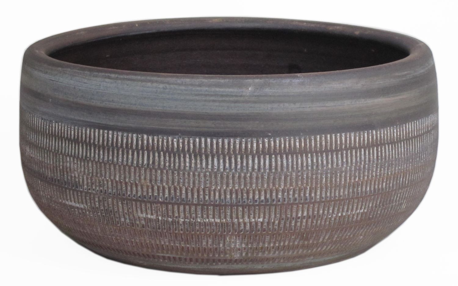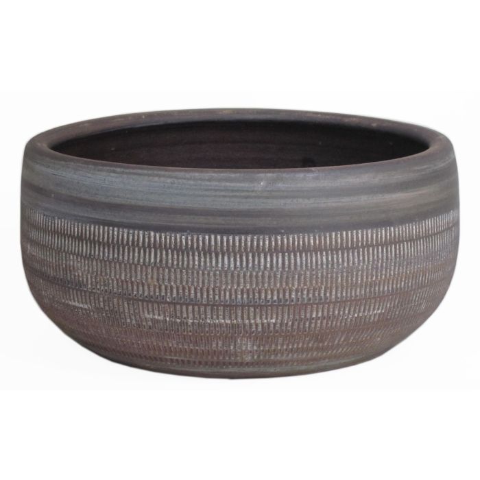 Vintage plant bowl AGAPETOS, ceramic, with structure, grey-brown, 5"/13cm, Ø11"/28cm
