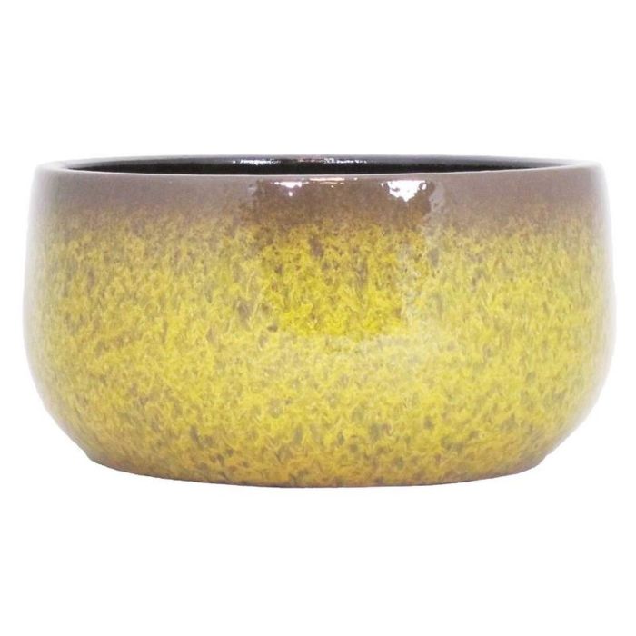 Flower bowl ELYAR made of ceramic in ochre yellow-brown colour with a diameter of approx. 29 cm and a height of approx. 14 cm.