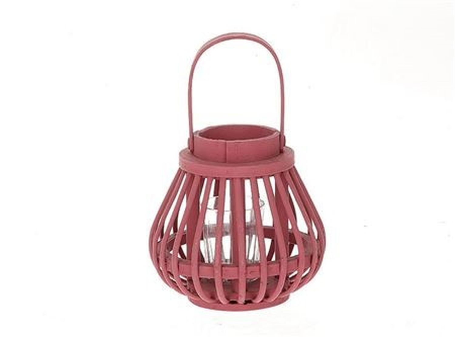 Wooden lantern CHARITHRA with handle, glass insert, berry, 6"/15cm, Ø6"/15,5cm
