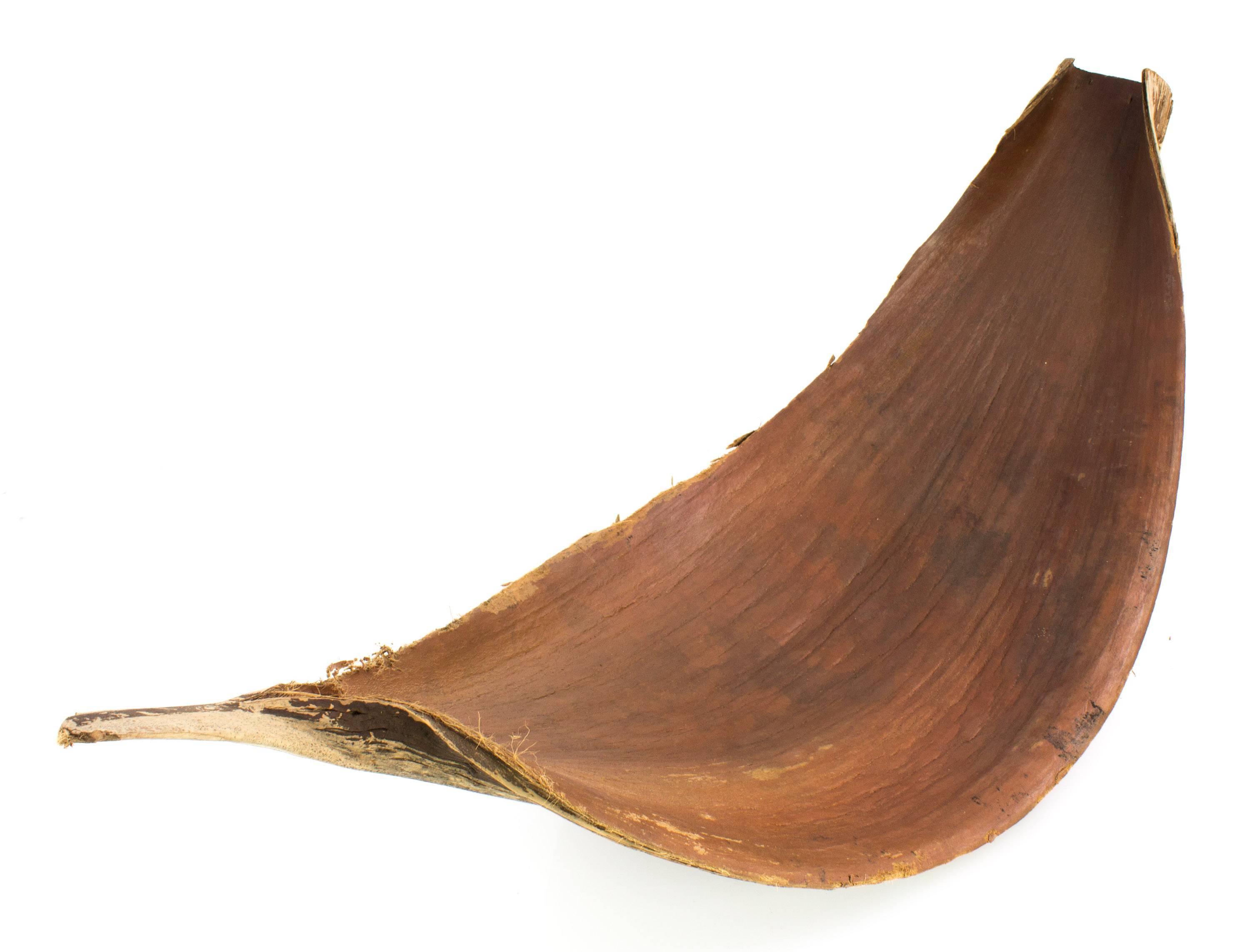 Dried loose coconut leaf in large size of approx. 30 - 80 cm. The curved leaf is untreated and can also be left as shown for decoration purposes.