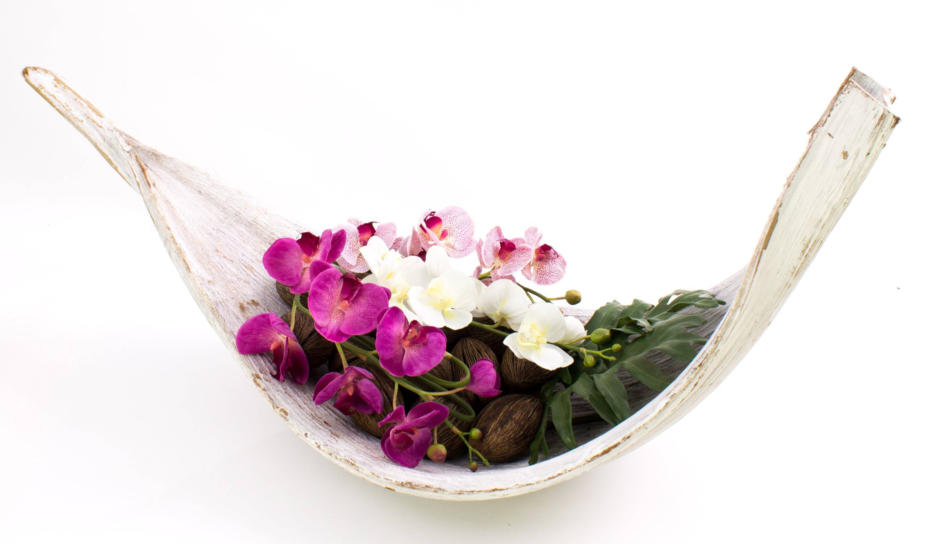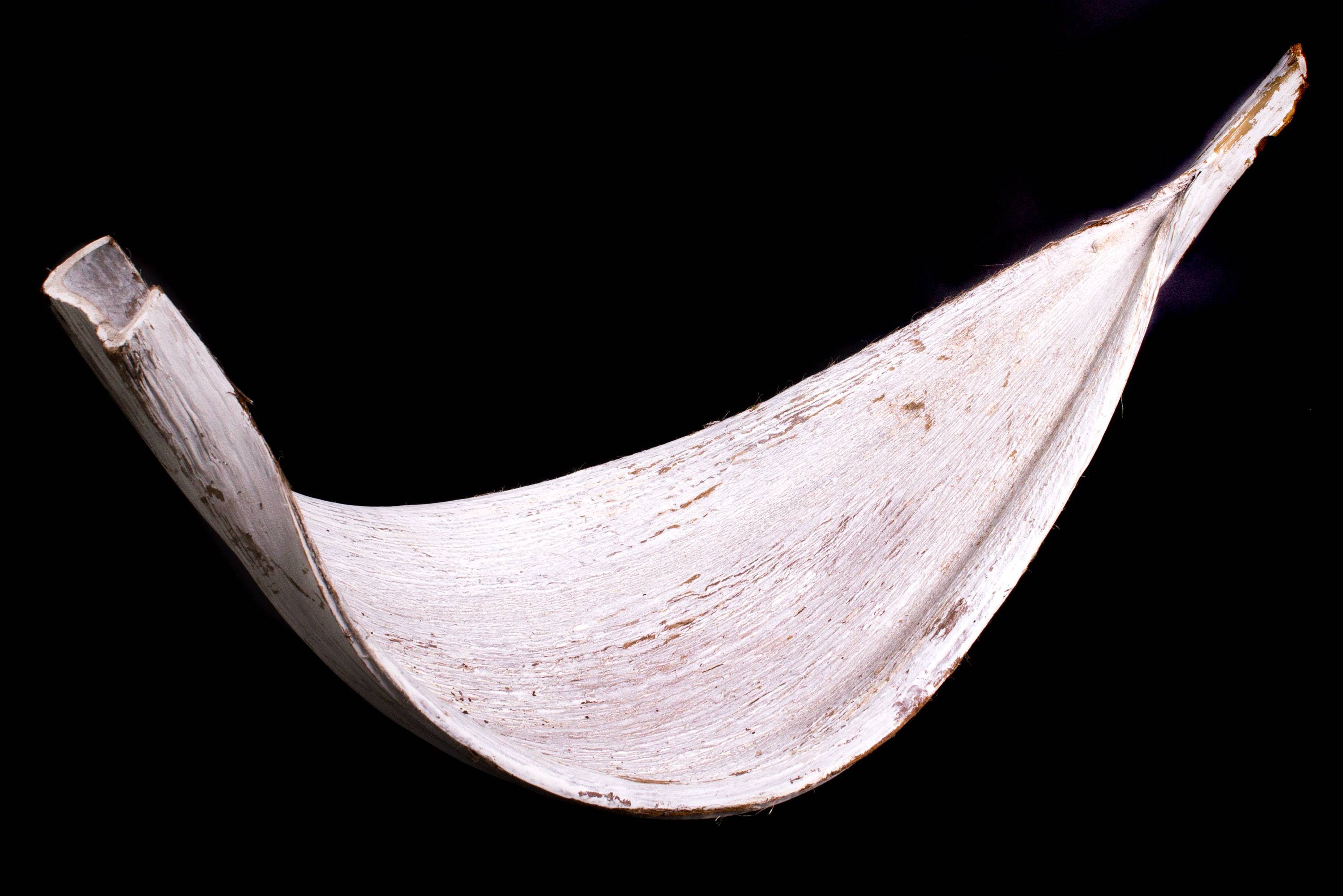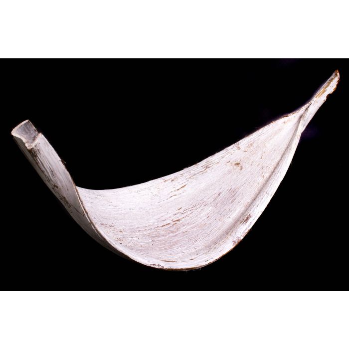 Dried loose coconut leaf in large size of approx. 30 - 80 cm. The curved leaf is surface-treated and stands by itself as shown for decoration purposes. As these items are unique, each leaf has its own colour and shape.