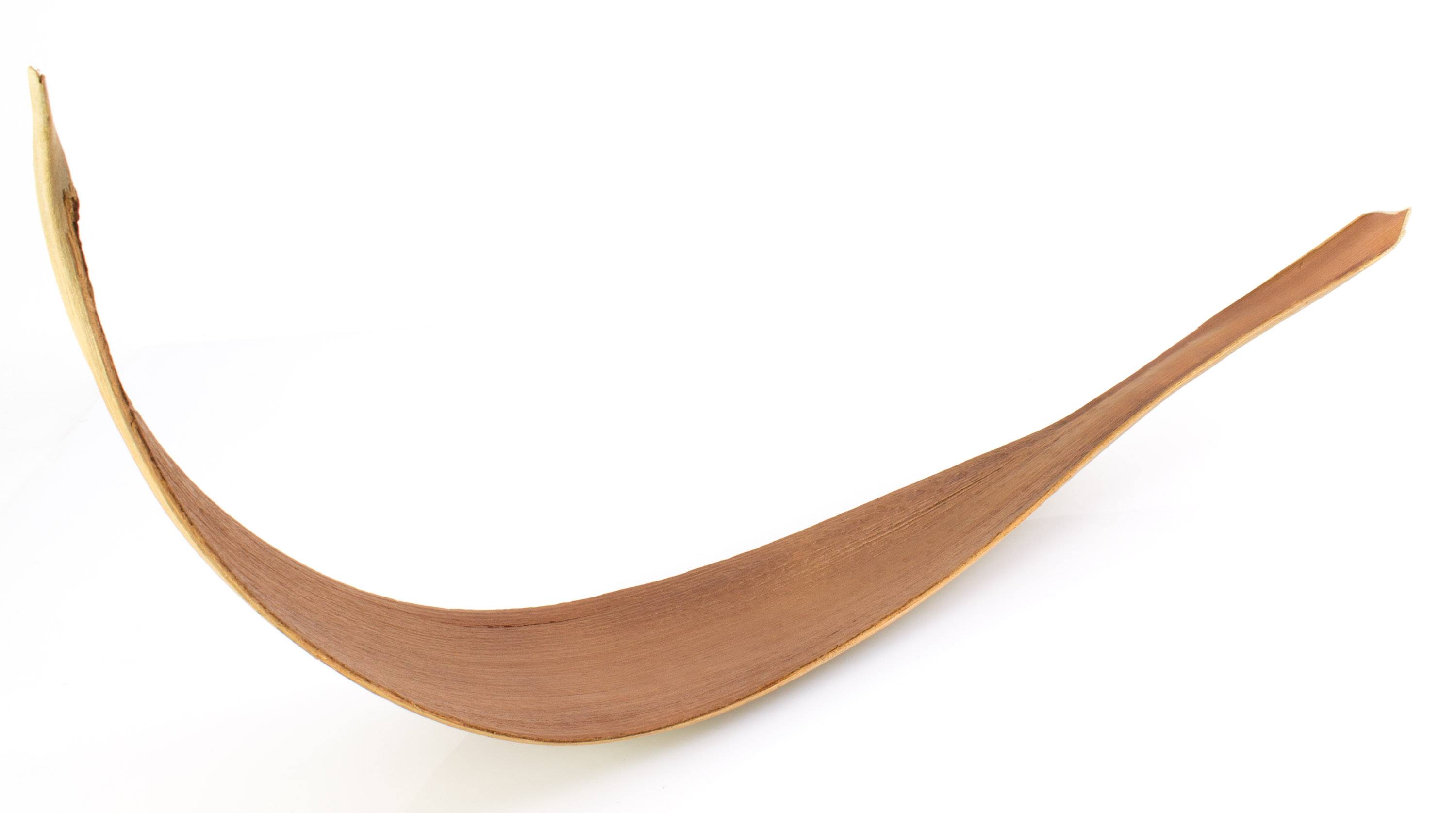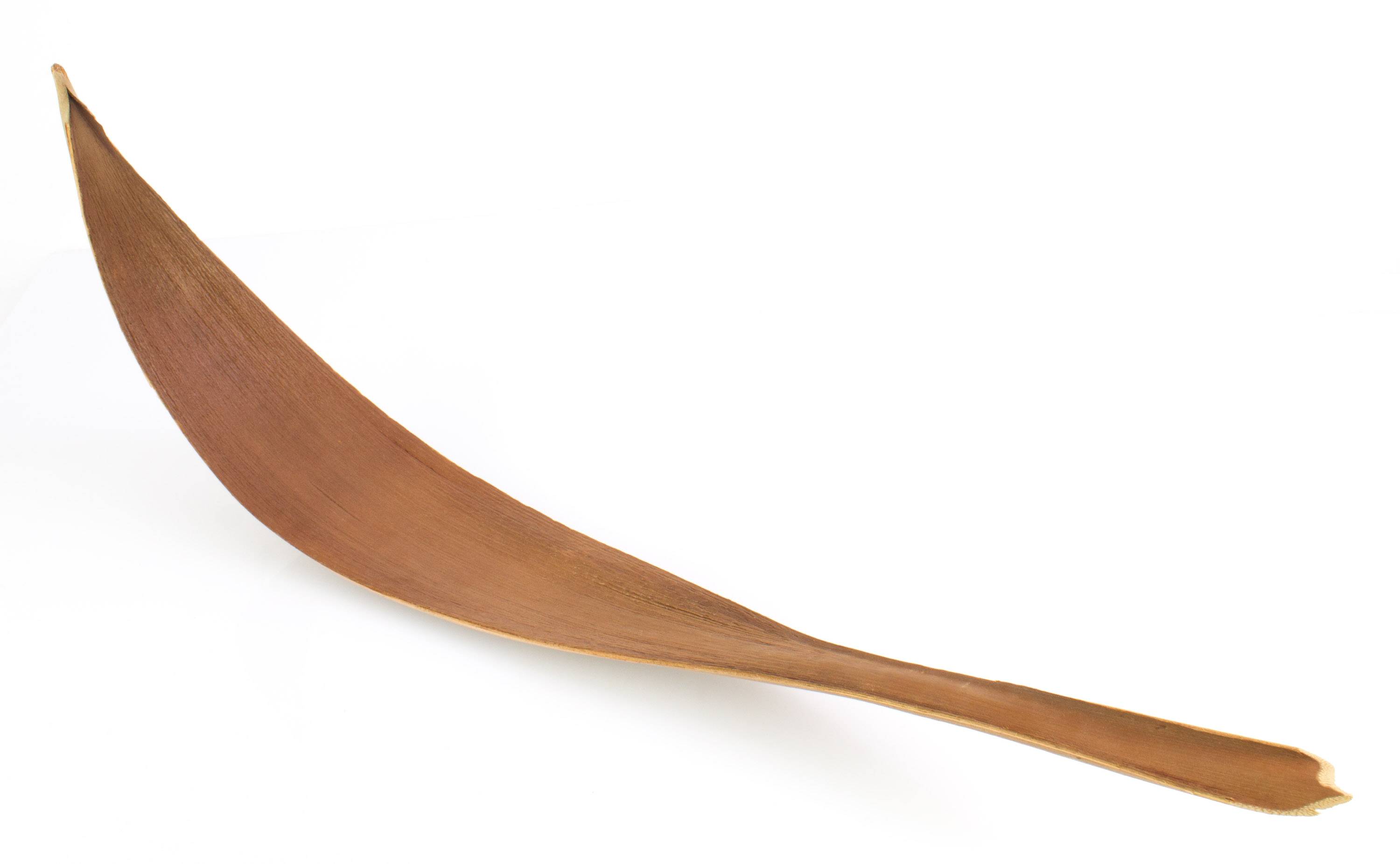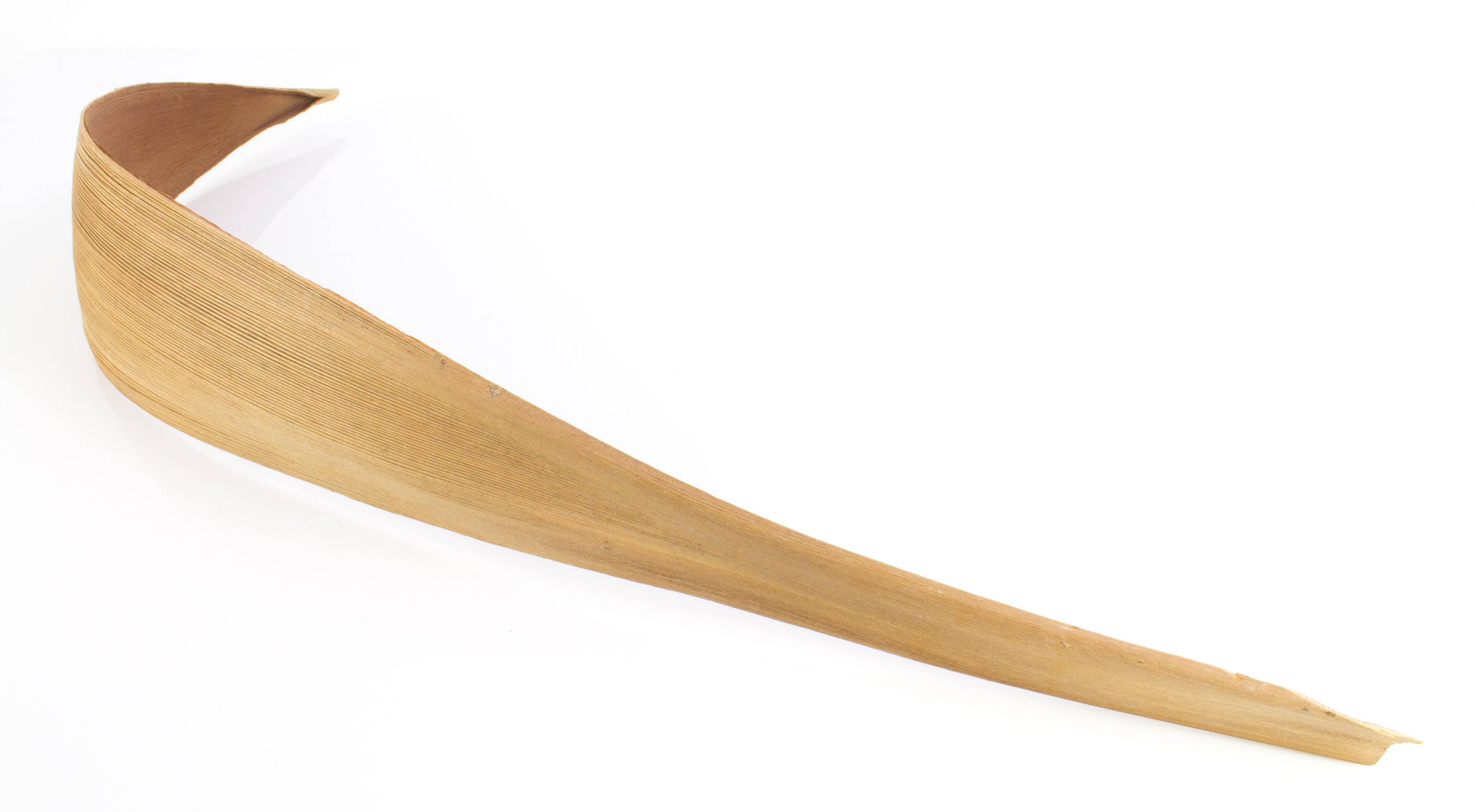 Dried loose coconut leaf in a large size of approx. 115 cm in length. The curved leaf is untreated and can also be left as shown for decoration purposes. As these articles are unique, each leaf has its own colour and shape.
