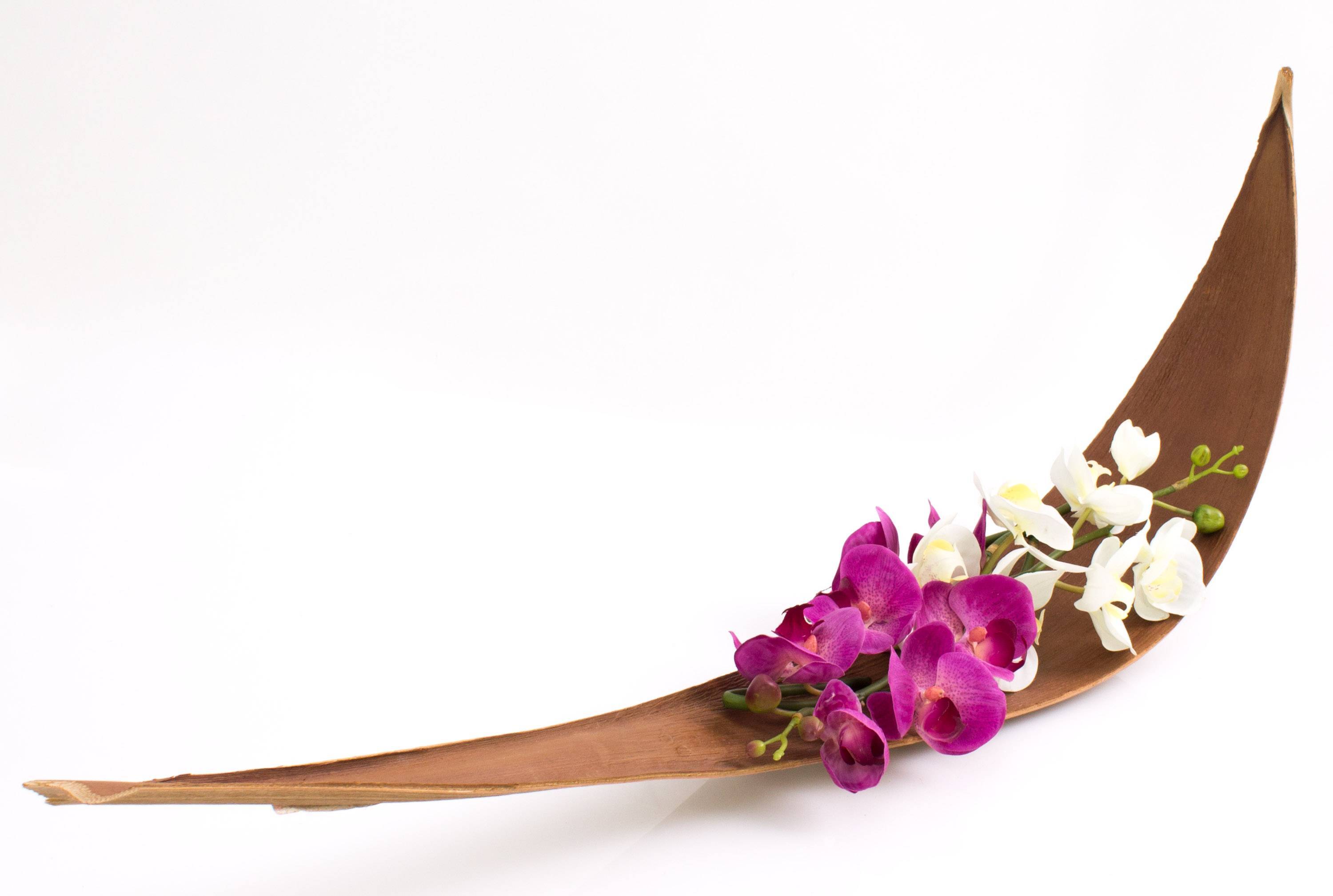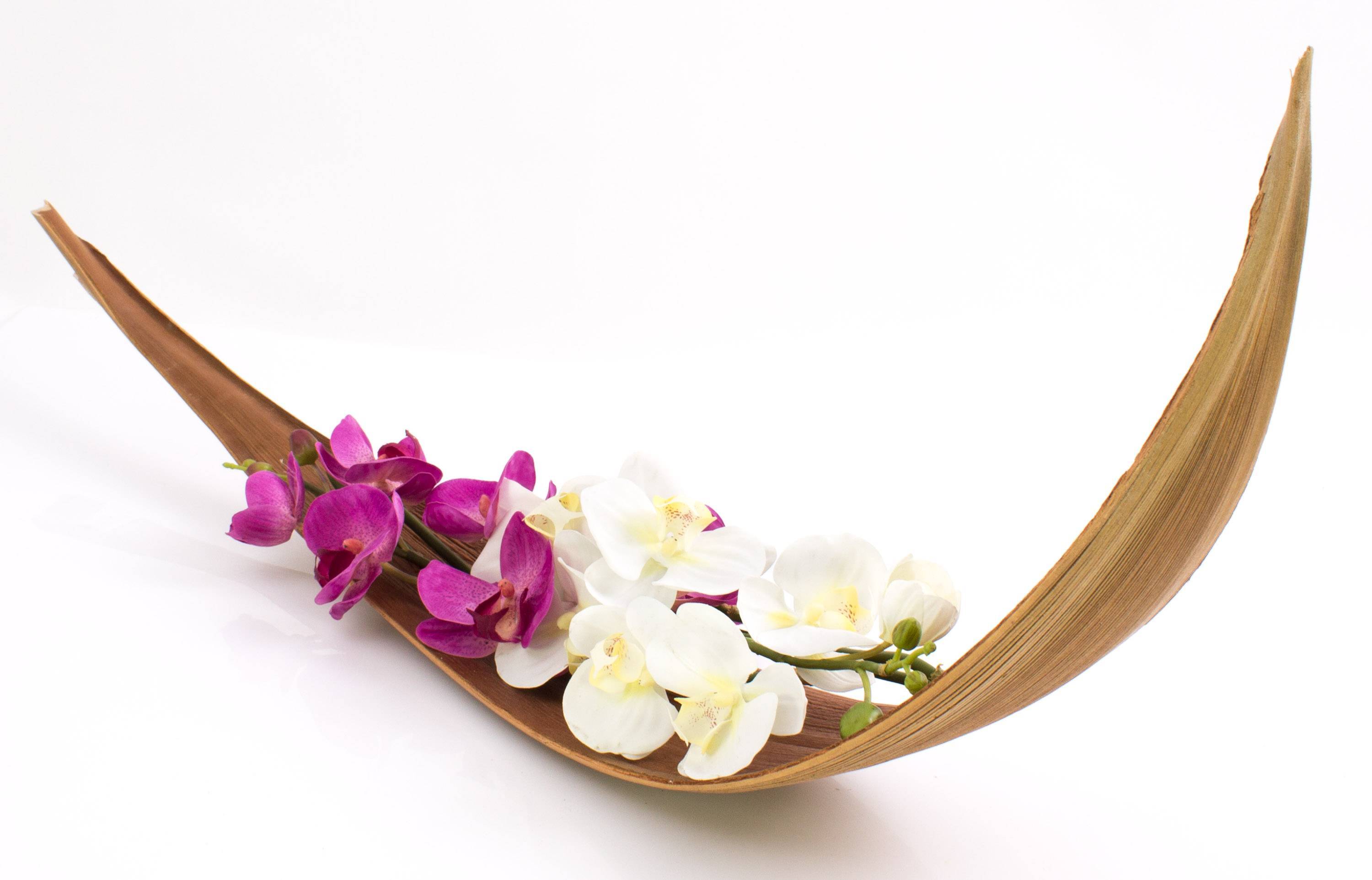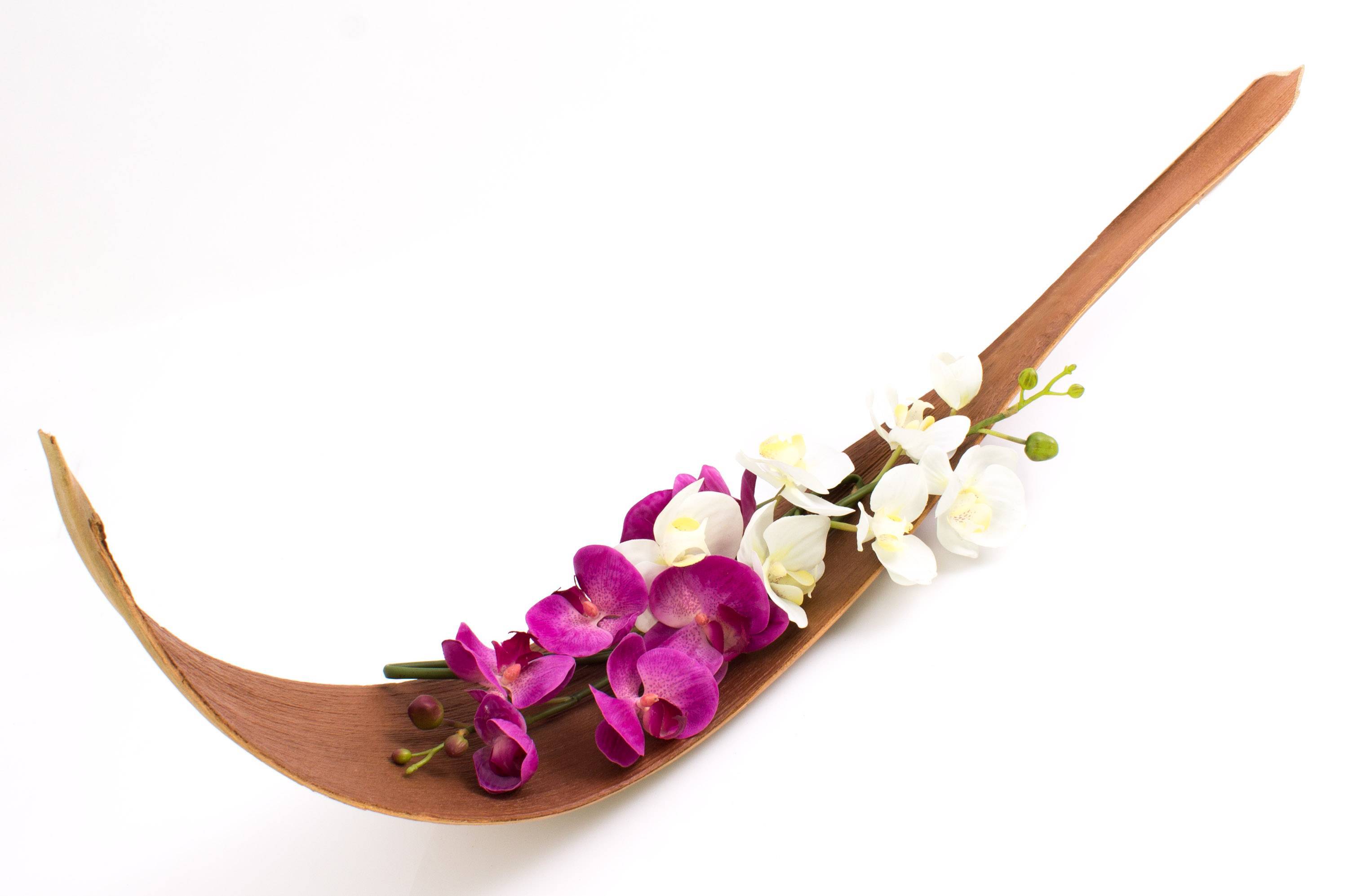 Dried loose coconut leaf in a large size of approx. 115 cm in length. The curved leaf is untreated and can also be left as shown for decoration purposes. As these articles are unique, each leaf has its own colour and shape.