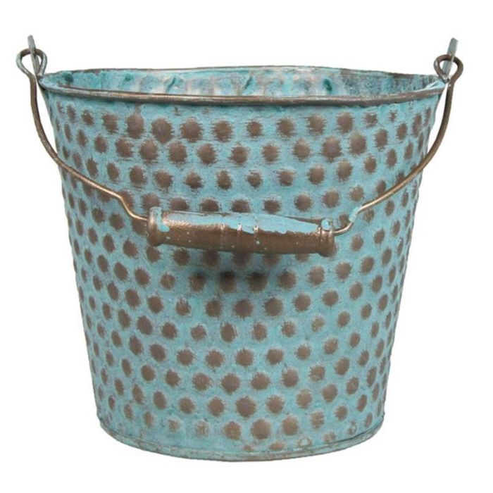 Zinc bucket TRUMAN with handle, with pattern, blue-brown, 5.5"/14cm, Ø6"/16,5cm